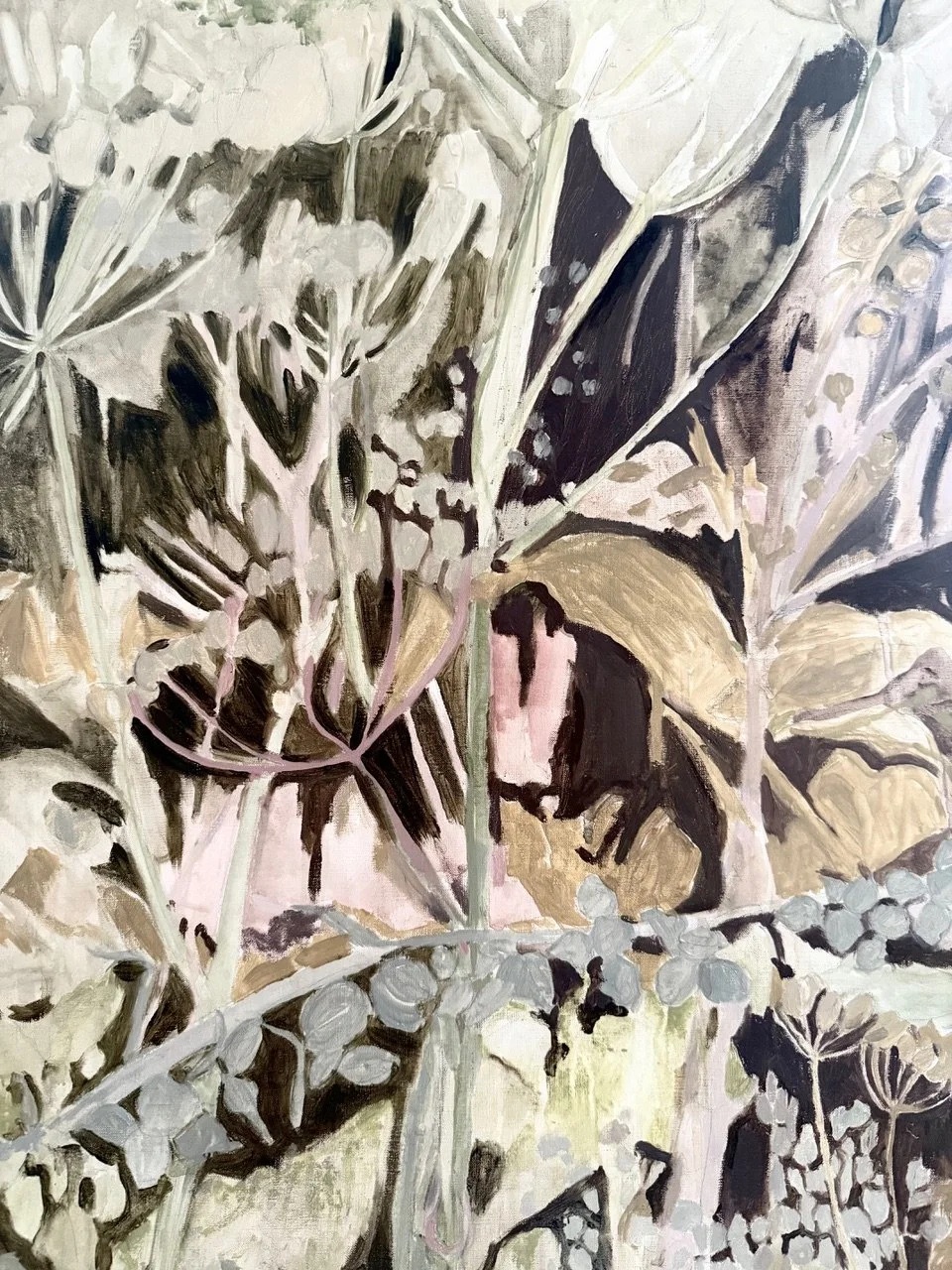 Jane Hirst is drawn to little known clutches of wilderness. This series of paintings have been in response to wildflower meadows on Dartmoor. As she has observed meadows throughout all the seasons of the year, she has found them to be a place of peaceful coexistence for creatures and animals.